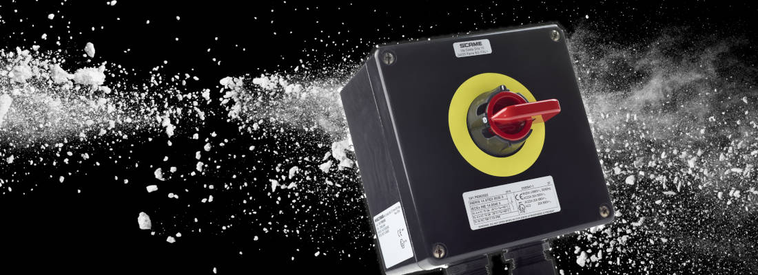 Para a zona 21 e 22, onde o risco de explosão é causado pela presença de poeira combustível, a SCAME desenvolveu soluções dedicadas certificadas IECEx II 2D, para oferecer o máximo nível de proteção para a aplicação específica, onde os produtos certificados GD são redundantes.